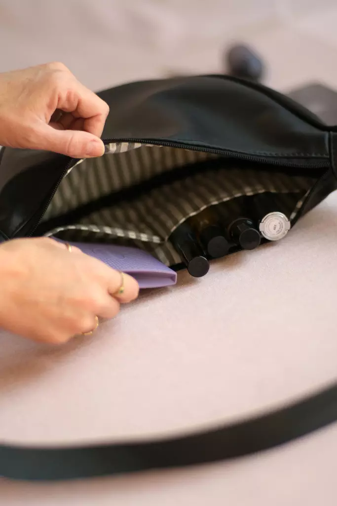 • La Luna Bag es LA Cartera que te Abraza. Para llevar todos tus esenciales (entra lo mismo que la Riñonera XL) sin ser Riñonera. Tiene 2 bolsillos internos y la correa es regulable.